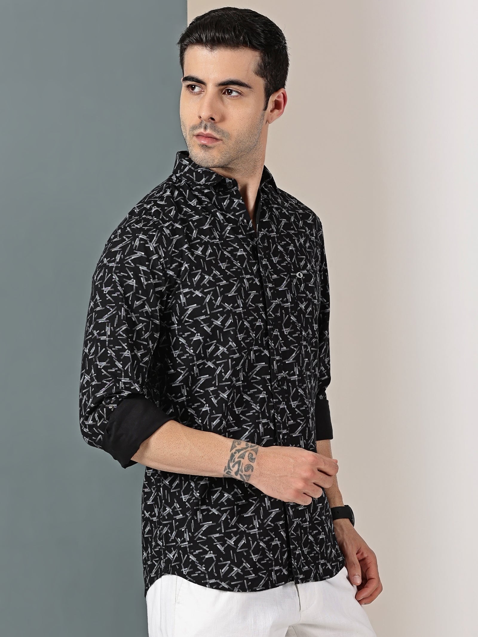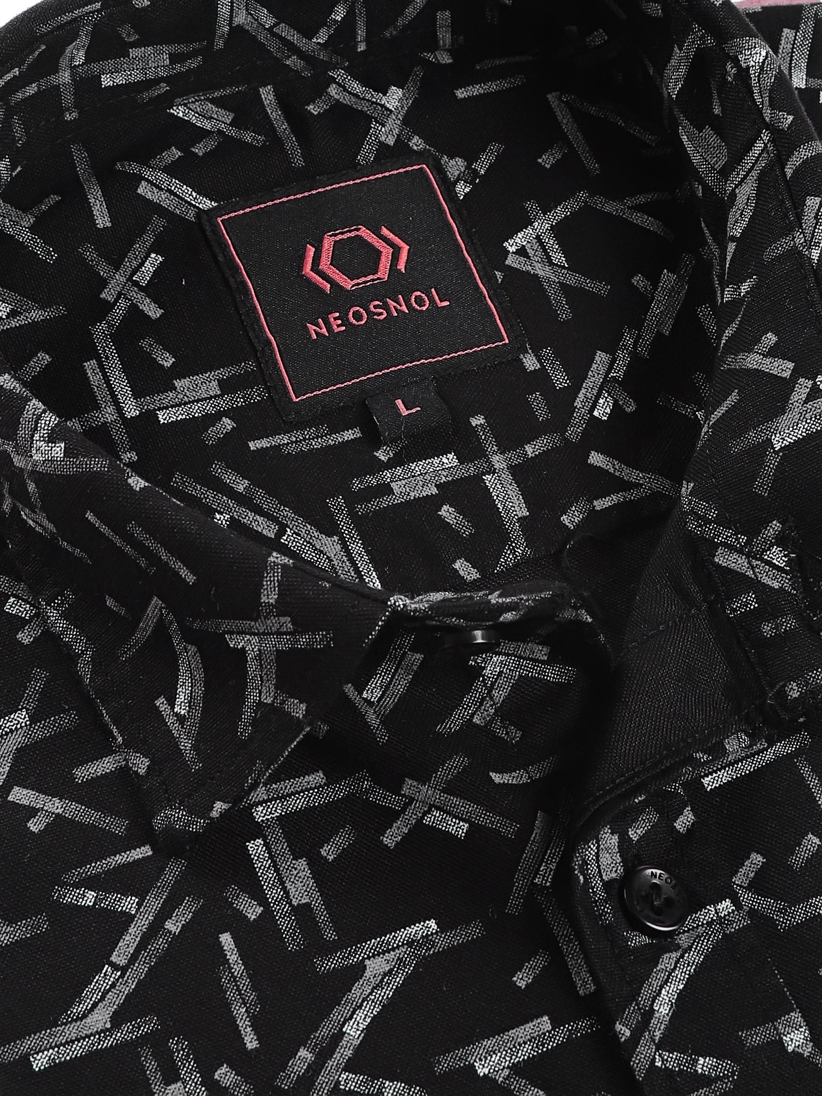 This is the versatile hero your wardrobe needs. Refined yet bold, this shirt combines a strong weave with a soft touch finish, ensuring durability and comfort. The monochrome-inspired abstract print adds depth and modern appeal.