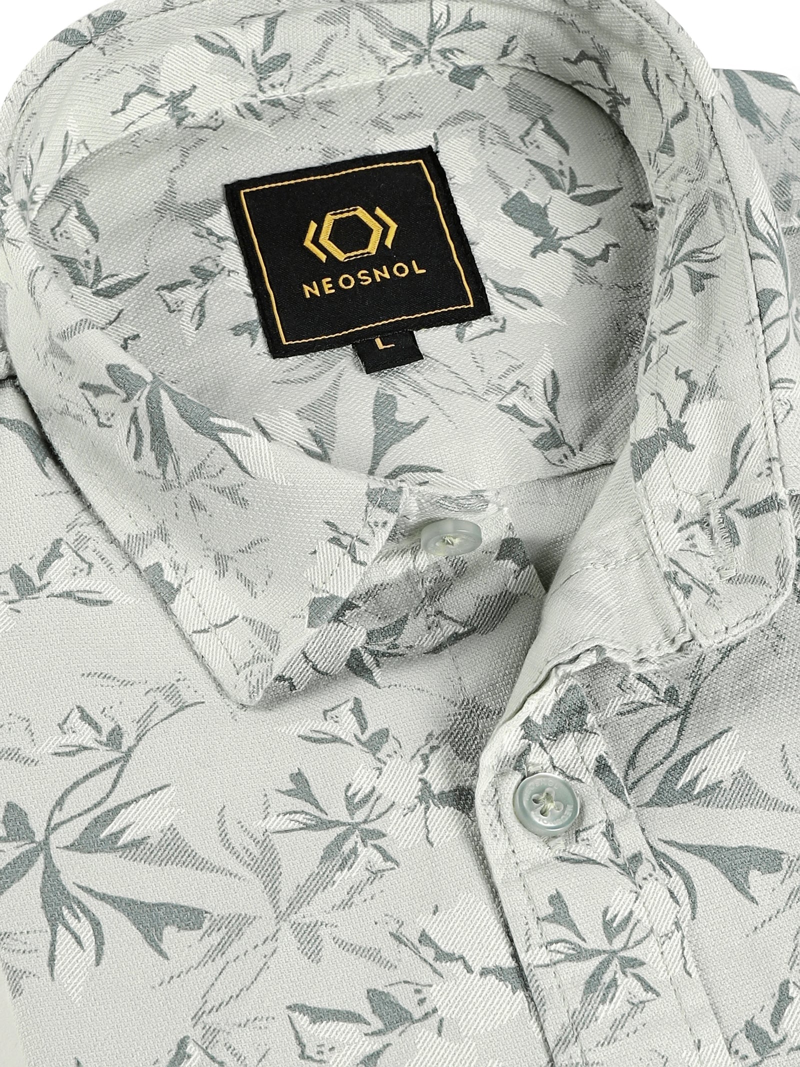 Seafoam Botanical Dobby Shirt – Cool Tonal Leaf Print